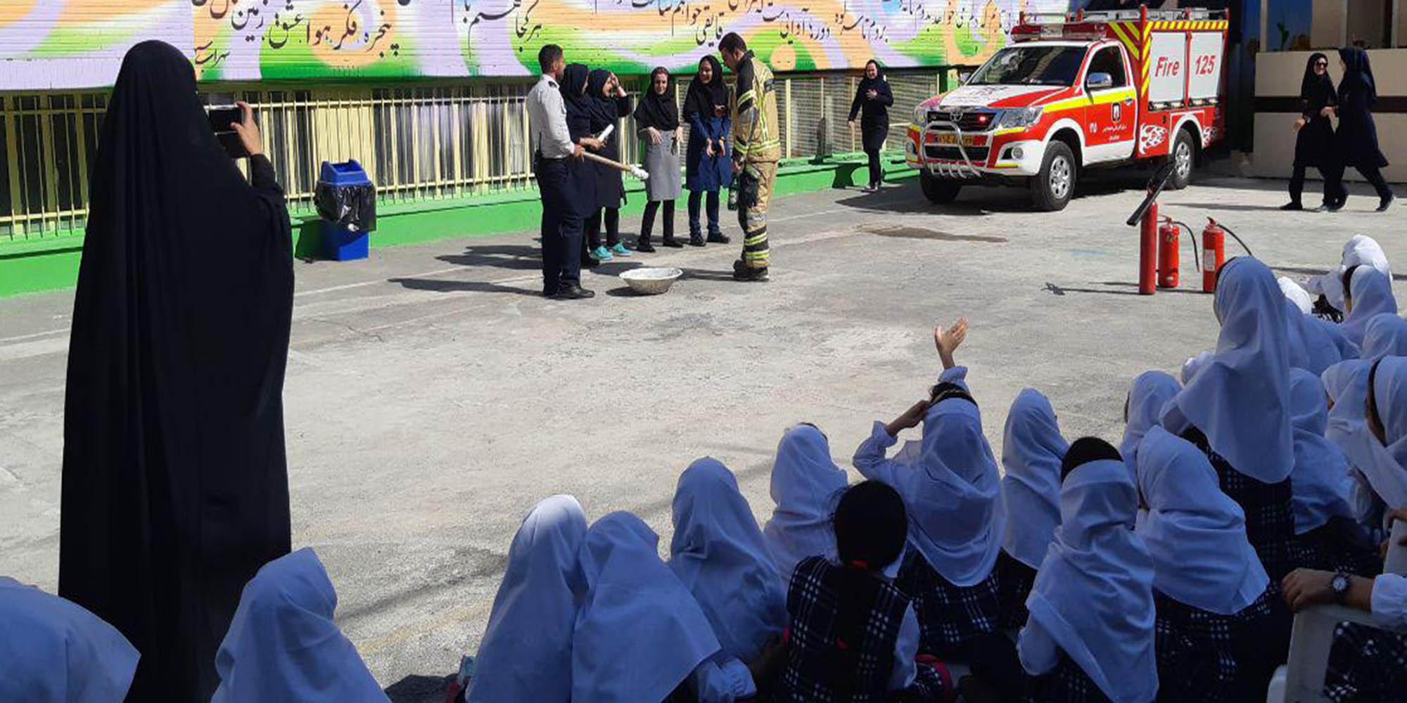 حضور آتش نشانان عزیز در مدرسه و آموزش نکات ایمنی به دانش آموزان