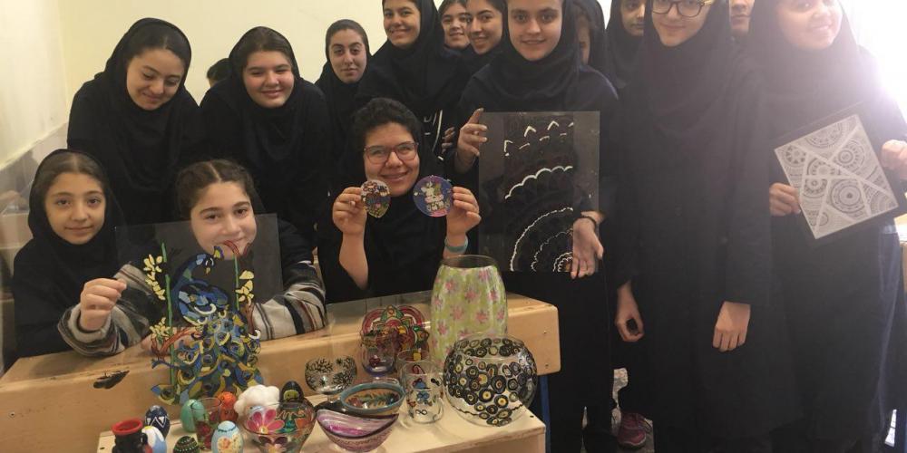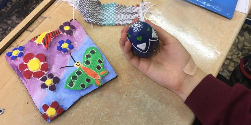 دانش آموزان نوآور در حال تزئین ظروف و تخم مرغهای رنگی